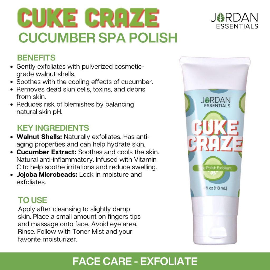 β¨ Cuke Craze Spa Polish Exfoliant is a blemish-fighting formula that kicks bacteria to the curb while gently exfoliating with natural walnut shell powder. Designed to help: