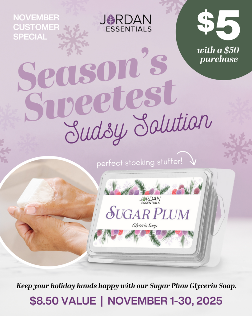 Keep your holiday hands happy with the sweet scent of Sugar Plum! This month, snag our Sugar Plum Glycerin Soap for just $5 with any $50 purchase.